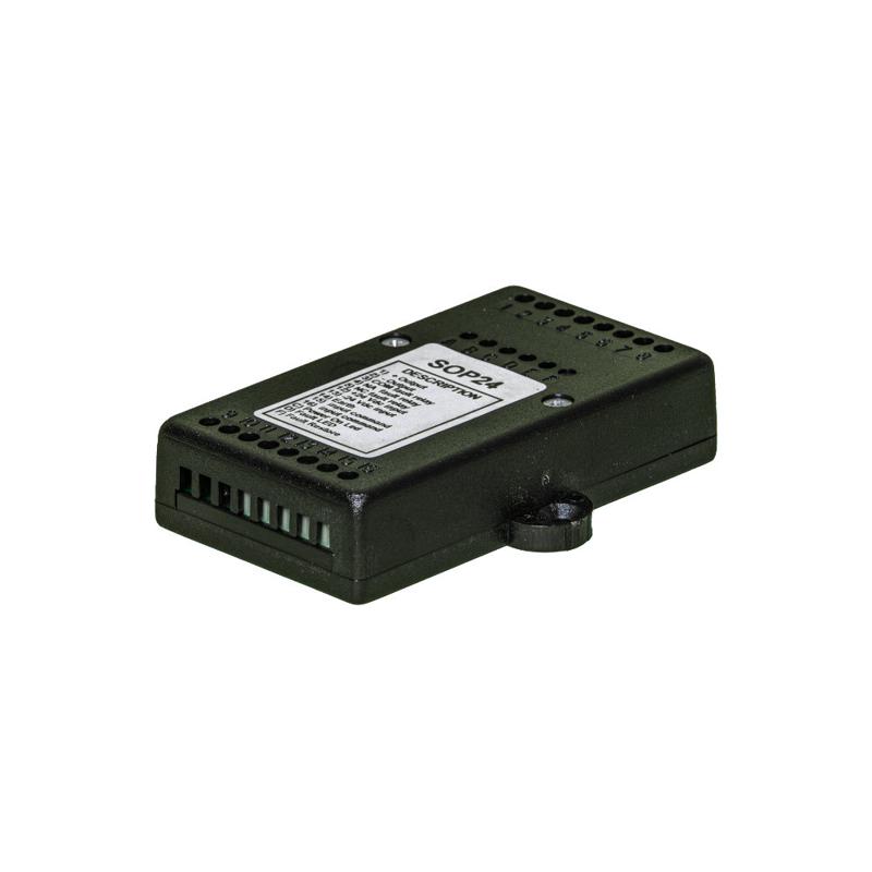 Il modulo SOP24 è un dispositivo di uscita supervisionata progettato per il controllo di sirene e altri dispositivi ottico-acustici. Ecco alcune delle sue caratteristiche principali: - Materiale e dimensioni: Realizzato in ABS nero, con dimensioni compatte di 95 x 53 x 24 mm. - Alimentazione: Funziona con una tensione di 22-30 Vcc. - Capacità di uscita: Supporta una corrente massima di uscita di 2A. - Supervisione: Include funzionalità per rilevare cortocircuiti, interruzioni di linea e sovraccarichi. - Segnalazioni LED: Dispone di LED per indicare lo stato di alimentazione e guasto. - Temperatura di funzionamento: Operativo in un intervallo di temperatura da -10°C a +70°C. - Certificazioni: Conforme agli standard EN54-18.