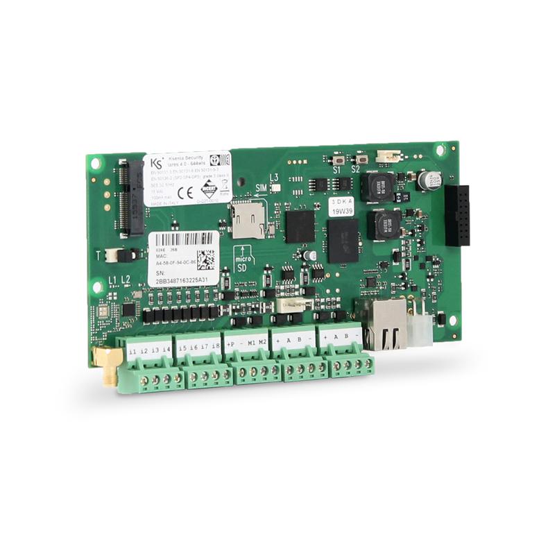 Lares 4.0-16 gestisce fino a 16 IN + 16 OUT con 6 partizioni - nativa con interfaccia Ethernet (senza wireless a bordo - necessita di ricetrasmettitore duo). Incluse le APP Installatore (Ksenia Pro) e Utente (lares 4.0). Certificata EN50131-Grado 3 e T031