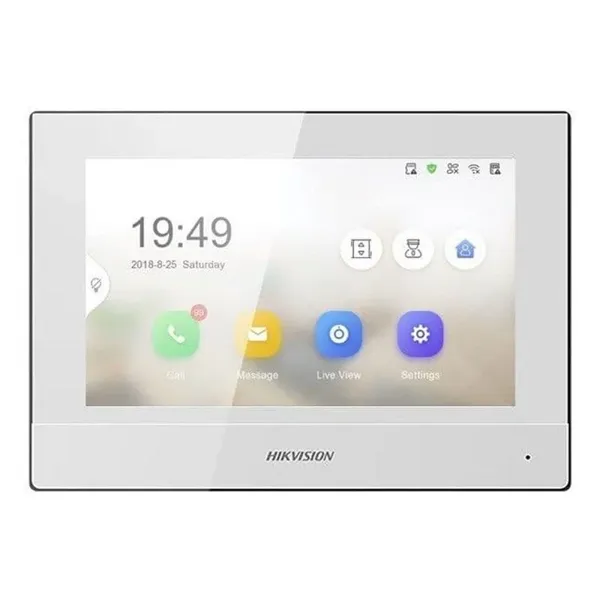 Postazione da interno IP 7" Bianca, Design Standard, Display Tecnologia TFT LCD, Touch screen capacitivo, Risoluzione 1024x 600, Microfono omnidirezionale e Speaker integrati, Interfacce di Comunicazione 1 Ethernet 10/100 Mbps, 1 RS-485, Protocolli di Comunicazione Wi-Fi, TCP/IP, SIP, RTSP, 8 Input d'allarme, 2 Uscite relè, 1 microSD/SDHC/SDXC 32GB (non fornita), Alimentazione 12 Vcc, PoE (802.3 af) 6 W max., Temperatura d'Esercizio -10 °C ~ +55 °C, Dimensioni 200x140x15 mm, Supporto a parete incluso